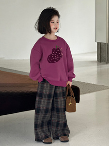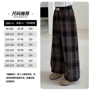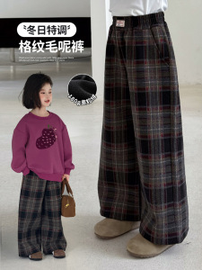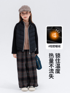 图图小象童装女童裤子2025冬季新款儿童格子裤加绒直筒裤休闲裤
