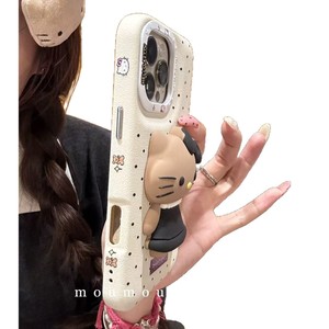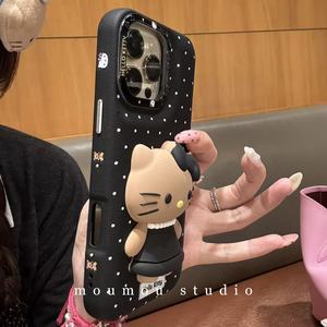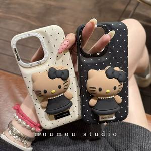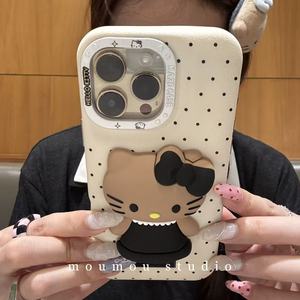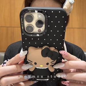 可爱卡通皮纹波点硅胶猫咪适用iPhone16promax苹果15手机壳17立体