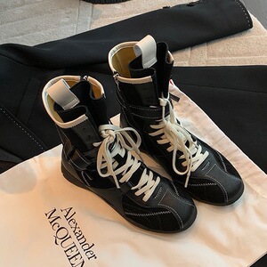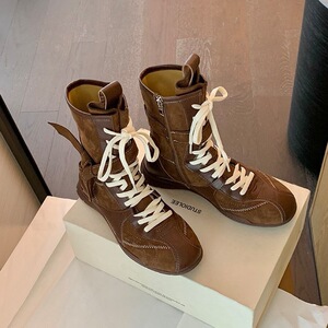 牛皮版~葡萄妈同款时髦复古拼色百搭绑带侧拉链拳击德训马丁靴女