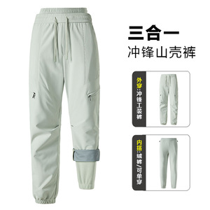 秋冬新款可拆卸内胆三合一冲锋裤男女同款户外防风保暖时尚休闲裤