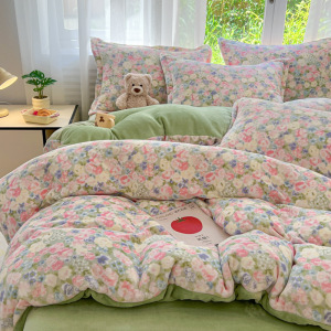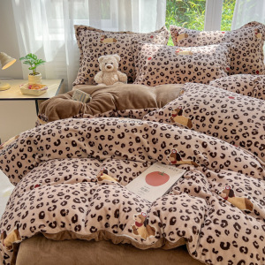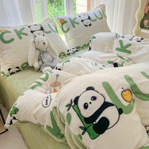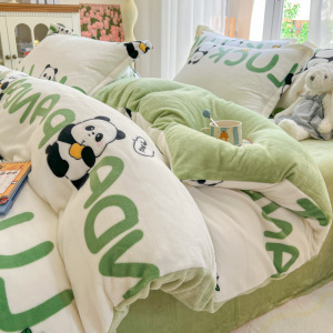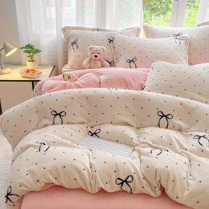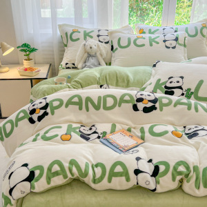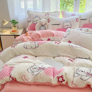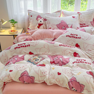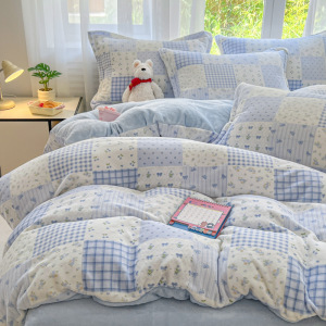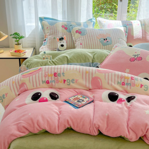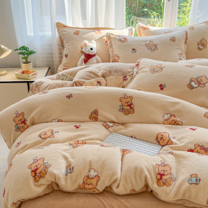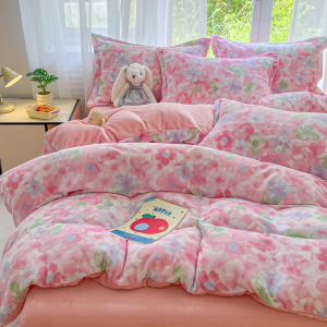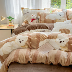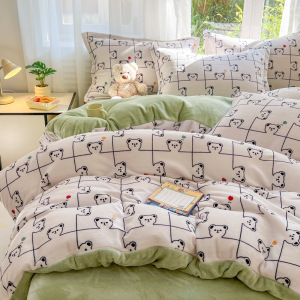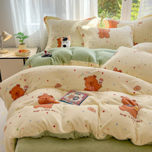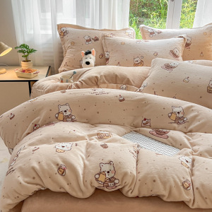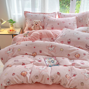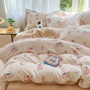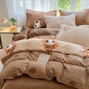 2025印花牛奶绒四件套家用卡通学生三件套高克重200保暖套件礼品