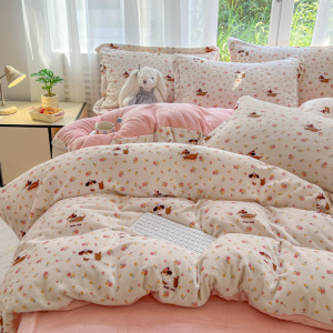 高克重200克牛奶绒印花四件套