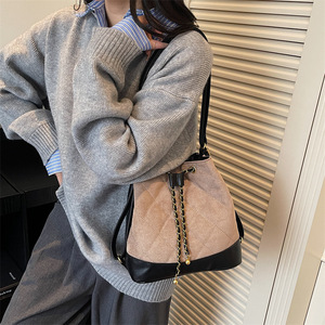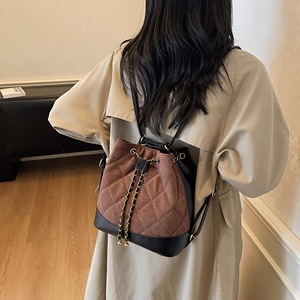 菱格链条水桶包包2025秋季新款麂皮绒复古小众设计单肩大包双肩包