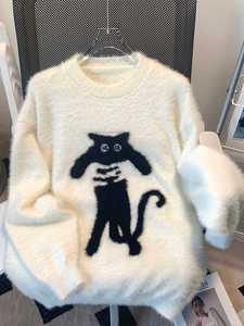 美式猫咪慵懒风宽松毛衣外套女针织衫宽松休闲长袖上衣秋冬新款