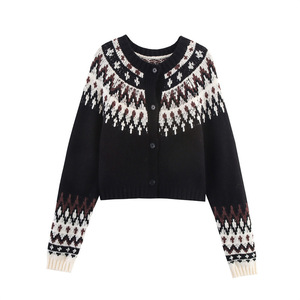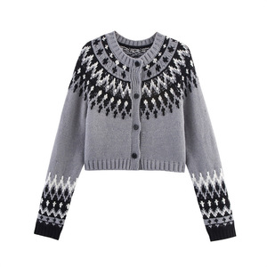 外贸单!2025秋季欧美风女装时尚休闲宽松长袖百搭提花针织开衫