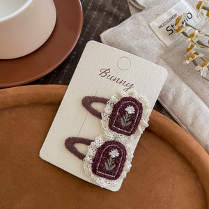 秋冬新款咖色系毛线刺绣花朵bb夹儿童发卡韩系女孩侧边夹刘海发饰