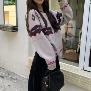 日系古着感提花针织开衫2025早秋新款慵懒风软糯毛衣菱形棕色上衣