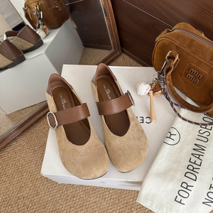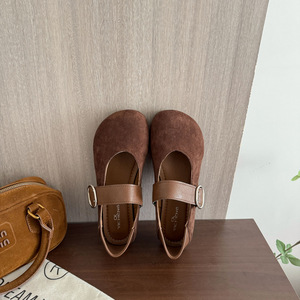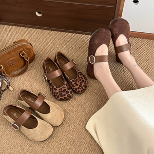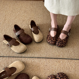 韩版绒面一字带豹纹玛丽珍鞋女2025秋季复古内增高软底浅口单鞋