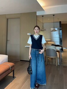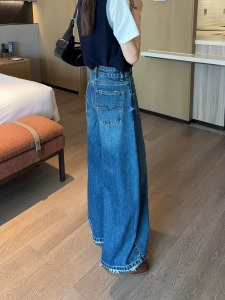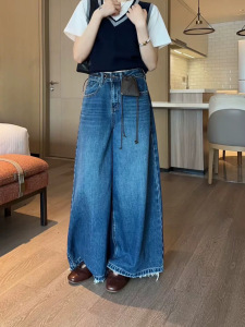 [送腰包]25秋季新款高腰时尚配包A字版阔腿裤 复古水洗毛边牛仔裤