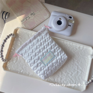缎面爱心刺绣软绵绵相机收纳包拍立得出行防摔收纳袋抽绳束口袋