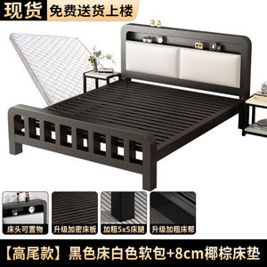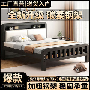 加厚静音铁艺床1.8米加固加厚双人床1米家用床不锈钢出租屋铁架床
