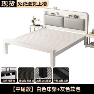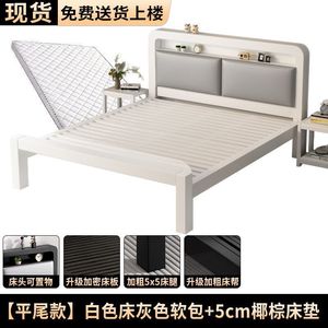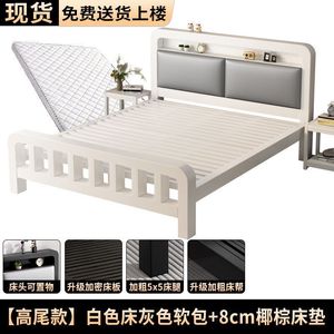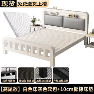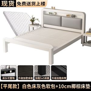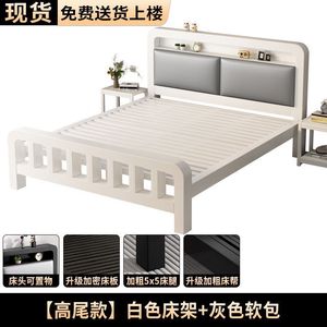 高尾款-奶白色裸床+8cm床垫【加厚灰软靠】