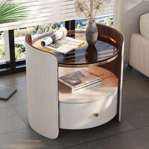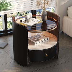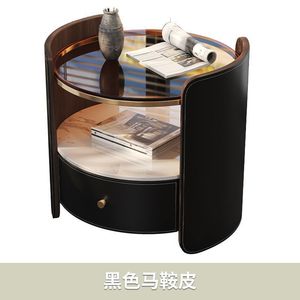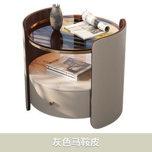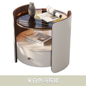 意式圆形床头柜极简马鞍皮现代高端斗柜卧室床边实木收纳小柜子