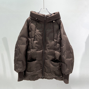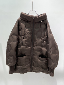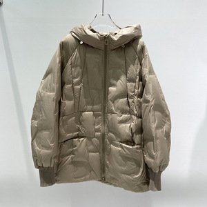 2025秋冬新款时尚连帽冬装外套压胶宽松欧洲站外贸羽绒服女中长款
