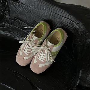 THE-FENGLIYA款真皮拼色平底德训鞋女透气轻便软底休闲运动阿甘鞋