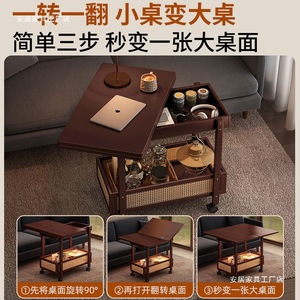 移动茶几可折叠桌子小户型客厅家用沙发阳台餐桌两用实木中古推车