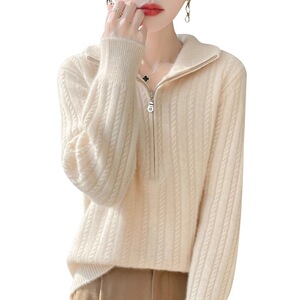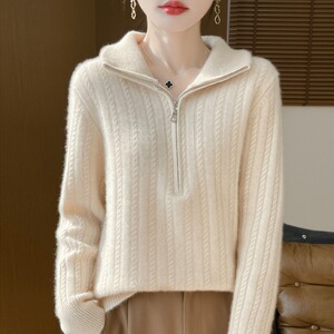 秋冬新款时尚拉链领毛衣外套上衣温柔风新款长袖设计感针织衫