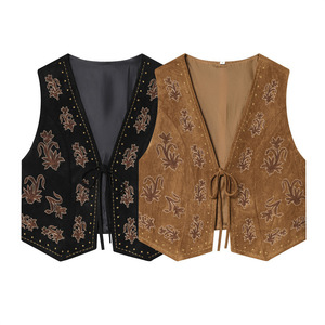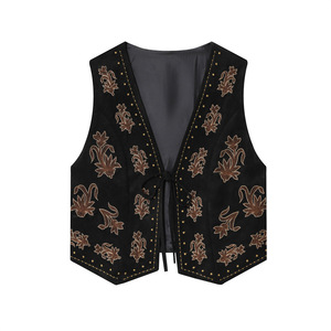 外贸单!2025秋季欧美风女时尚休闲宽松刺绣绒面马甲背心4344621