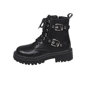 42大码双皮带装饰扣马丁靴女2025年秋冬新款圆头英伦风机车靴批发