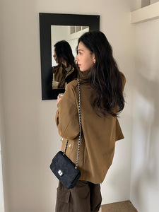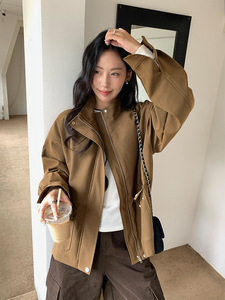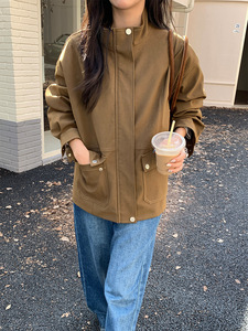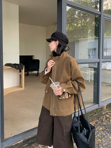 广州黄峥早秋短外套英伦复古高级感工装风拉链休闲通勤上衣530908