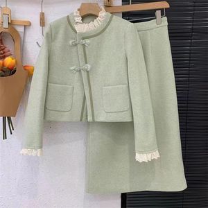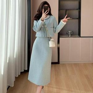 2025加棉加厚香风套装新款保暖外套半身裙冬季复古中式两件套气质