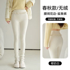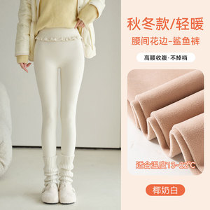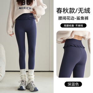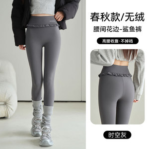 腰间花束鲨鱼裤秋冬加绒加厚保暖打底裤高腰无尴尬线不掉档瑜伽裤