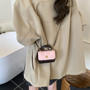 斜挎包时尚磨砂皮撞色小香风菱格手提包迷你配饰百搭耳机口红包包