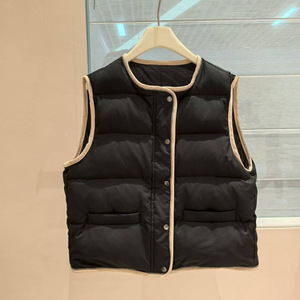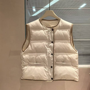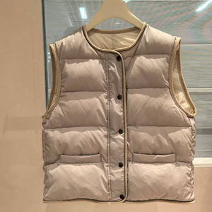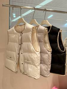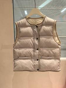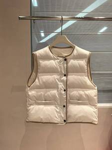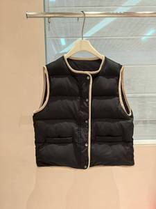 轻盈保暖BC珠链鸭绒马甲女秋冬宽松外穿灯芯绒包边无袖羽绒短外套