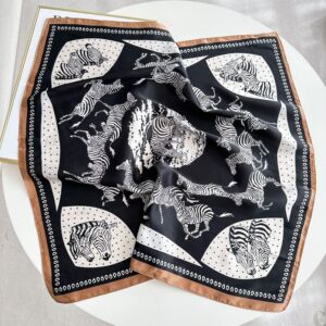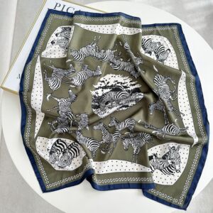 新款斑马印花70*70方巾时尚装饰穿搭小领巾仿真丝斜纹绸女士丝巾
