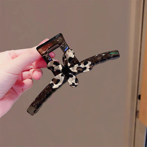 9#【黑茶低夹】一字豹纹花朵抓夹