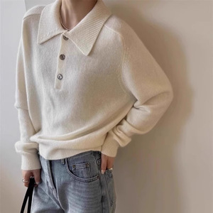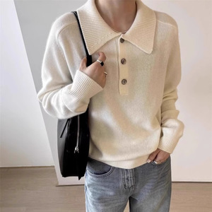 100纯羊毛衫女式翻领针织内搭秋冬新款软糯亲肤纯色套头打底毛衣