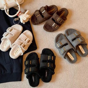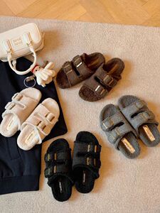 葡萄妈同款软乎乎~懒人双扣带外穿百搭保暖厚底毛毛勃肯拖鞋女