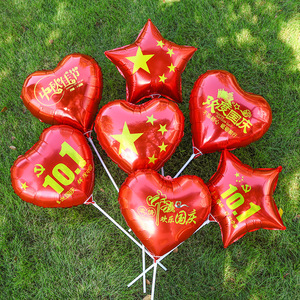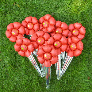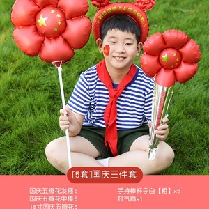 【18寸国庆五瓣花+托杆】10套 送打气筒