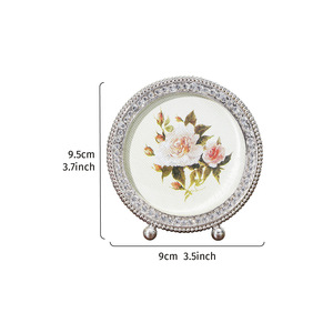 简约银色圆形相框表面镶钻设计家居装饰展示相框适用于卧室书房