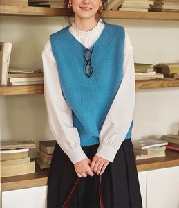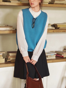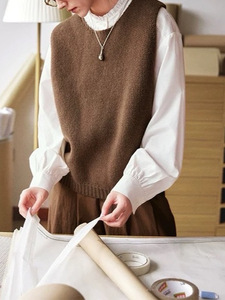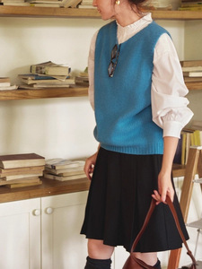 “西西里岛”法式复古羊毛针织背心文艺叠搭圆领毛衫马甲