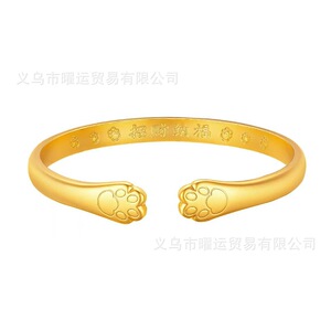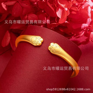 爆款招财合金古法开口招财纳福猫爪手镯女士镀金精品可爱猫爪手镯