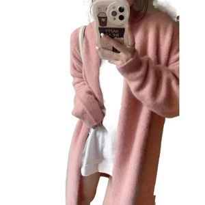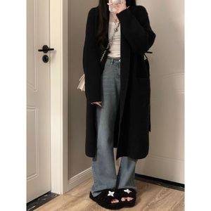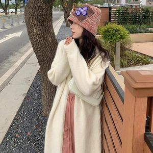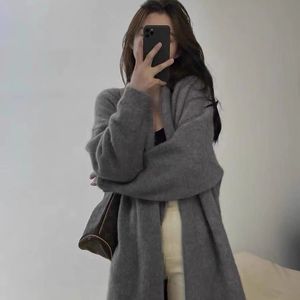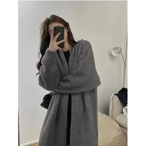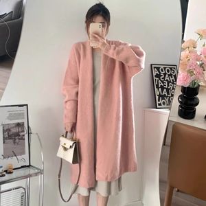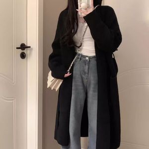 纯色中长款宽松过膝毛衣外套纯色新款慵懒温柔加厚针织开衫大衣女