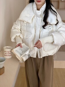 连帽短款羽绒服女冬季设计感韩版宽松小个子加厚保暖白鸭绒外套女