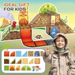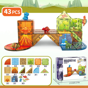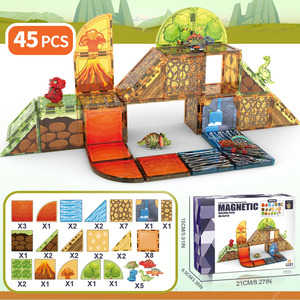 跨境场景磁力片积木城堡恐龙森林主题套装儿童拼搭磁性积木玩具