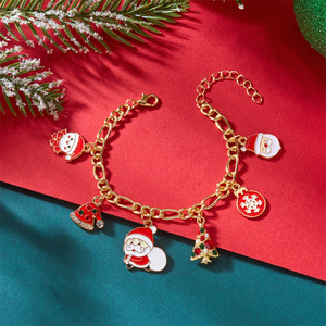 欧美跨境圣诞手链可爱卡通麋鹿雪花圣诞老人拐杖多配件吊坠手链女