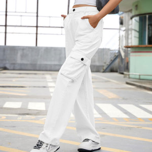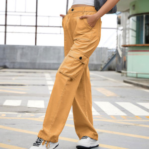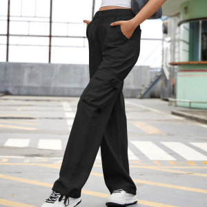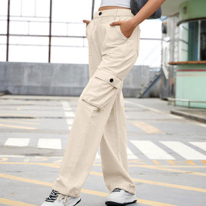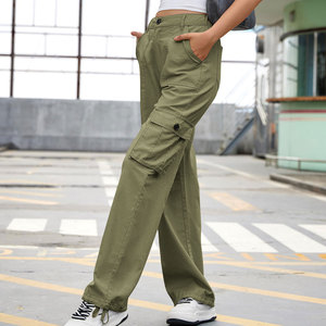 2025欧美女装街头时尚多口袋工装直筒长裤高腰显瘦宽松阔腿工装裤