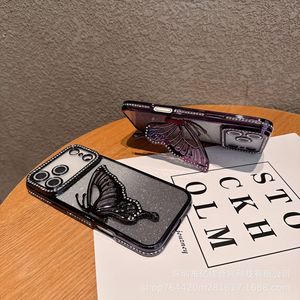 轻奢闪粉水钻立体蝴蝶支架适用iPhone17PROMAX手机壳苹果16软壳15