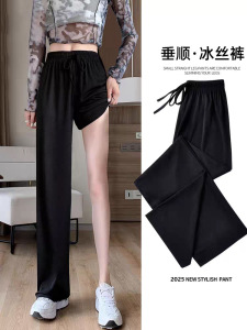速干直筒休闲裤夏季薄款女装大码胖妹妹修身显瘦阔腿裤宽松九分裤