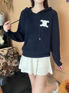 凯旋门毛衣软糯慵懒风设计感小众秋装女2025新款连帽针织卫衣