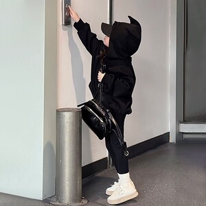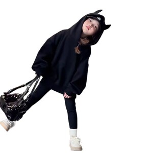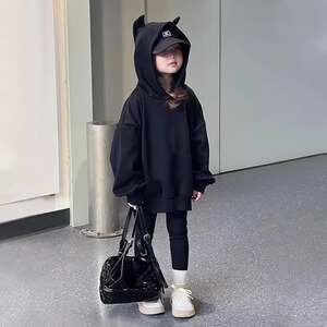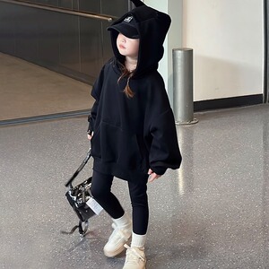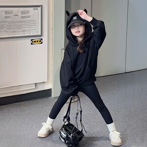 女童连帽卫衣春秋2025新款洋气儿童秋装超好看衣服女大童黑色上衣