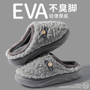 厚底羊羔绒棉拖鞋女冬季室内居家加绒保暖情侣可爱笑脸毛绒拖鞋男