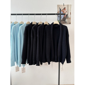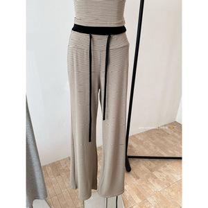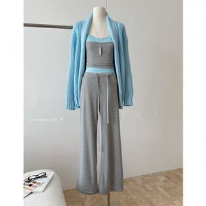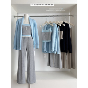 糖糖~针织长袖外套女秋季内搭条纹背心抽绳垂感长裤套装