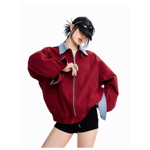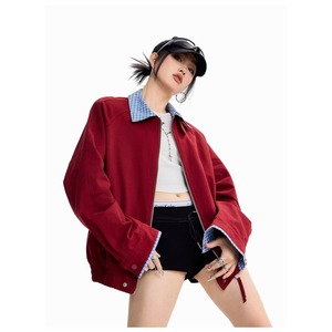 时尚文艺简约慵懒ins格子拼接夹克外套日系百搭潮流流行新款原宿