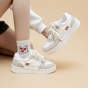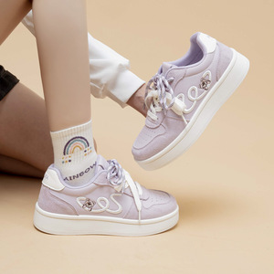 秋季新款时尚百搭系带女款小白鞋 韩版厚底增高休闲轻便运动板鞋