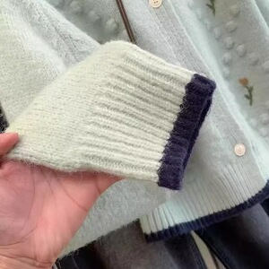 时尚甜美刺绣花朵软糯开衫女秋冬季新款宽松百搭气质毛衣小香风